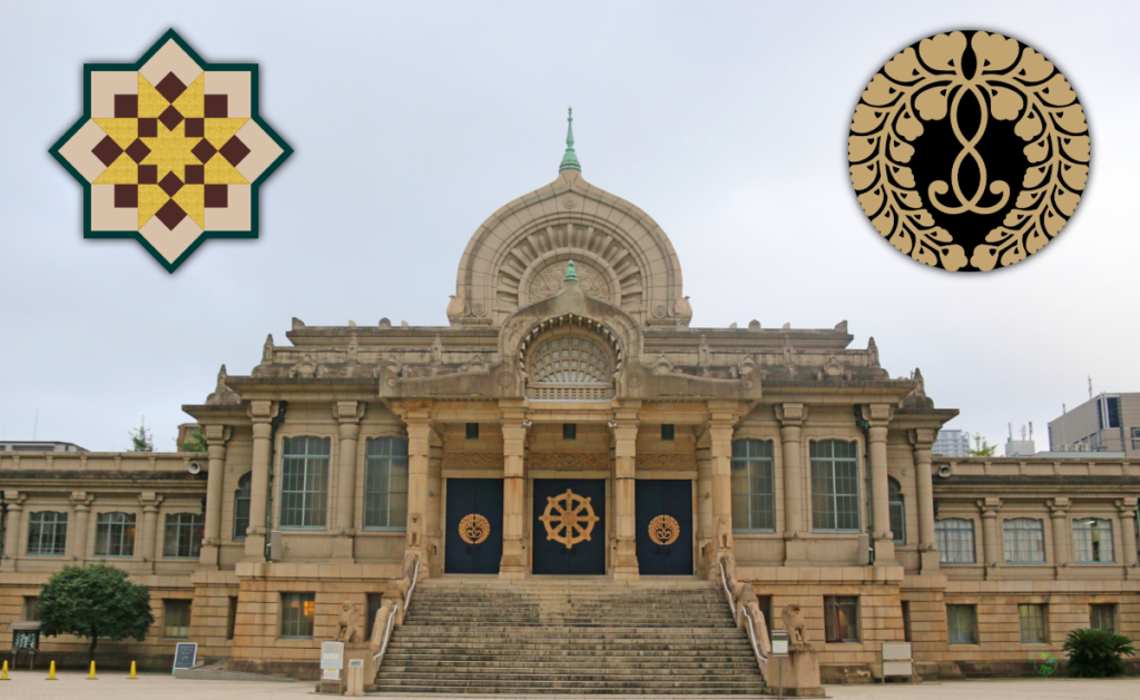 築地で ひときわ目を引く建物「築地本願寺」。日本のお寺らしくないインド風の建物は、シルクロードでの奇跡の出会いがきっかけでした。寺紋は「下り藤紋」と「菊くずし紋」。2つの寺紋について、そして“文様”と“紋様”の違いについても解説します。