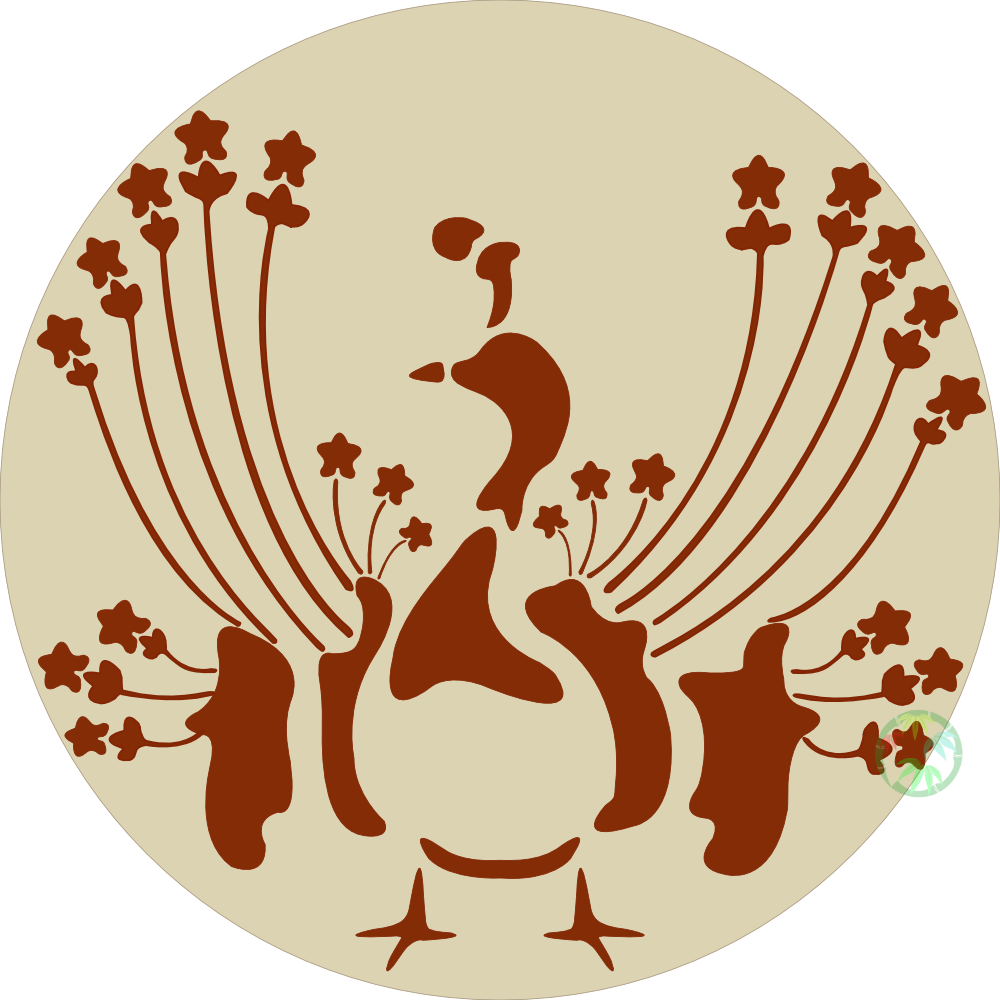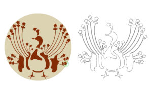 「孔雀文様」のぬり絵の下図を、こちらからダウンロードできます。