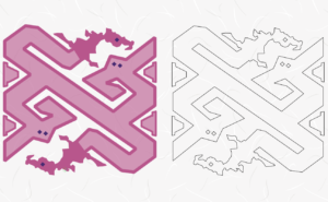 文様のナーガは、頭にはトサカがあり、蛇の様な体をジグザグに曲がりくねらせているのが特徴です。
